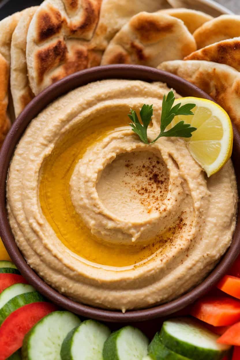 Chickpeas, tahini, lemon juice, garlic, and olive oil whirl together into a silky spread. For extra smoothness, peel the chickpeas or use canned varieties warmed briefly in water. Adjust the lemon and garlic to taste, then let the hummus chill so flavors meld. Scoop it up with warm pita or sliced vegetables for a satisfying snack.