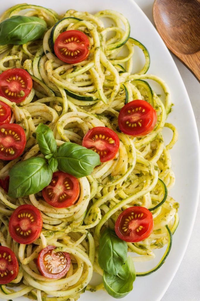 - 17. Zucchini Noodles with Pesto and Cherry Tomatoes