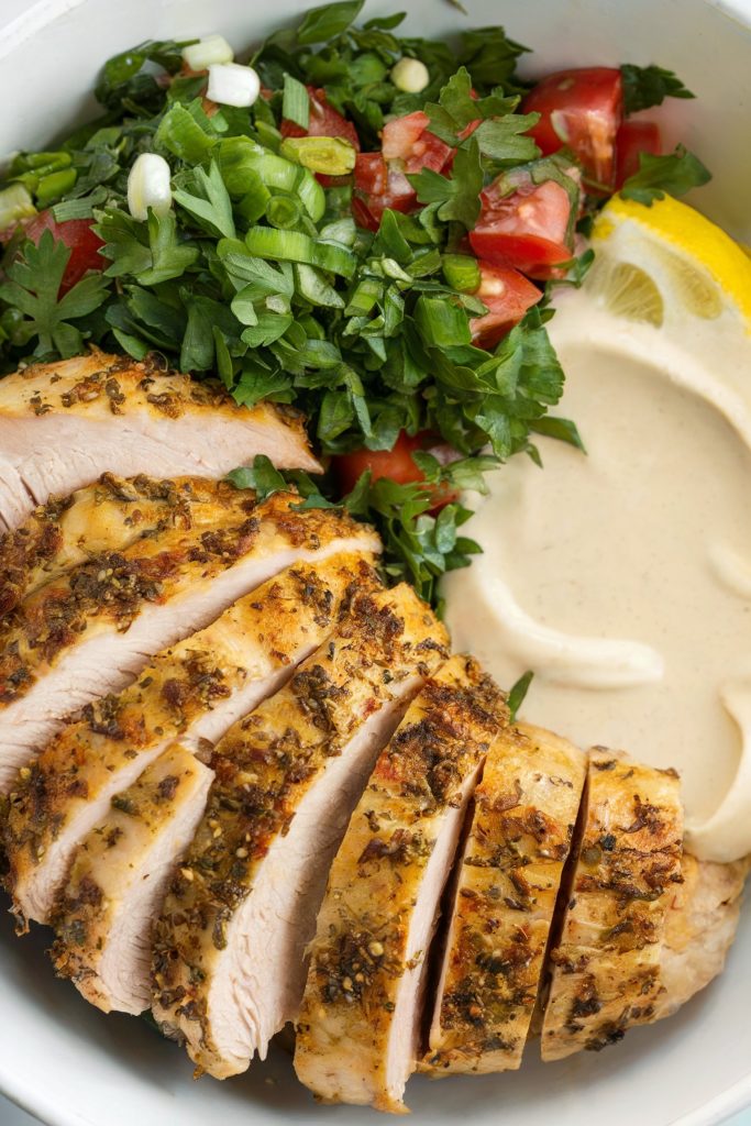 4. Chicken Shawarma with Tabbouleh and Tahini Sauce