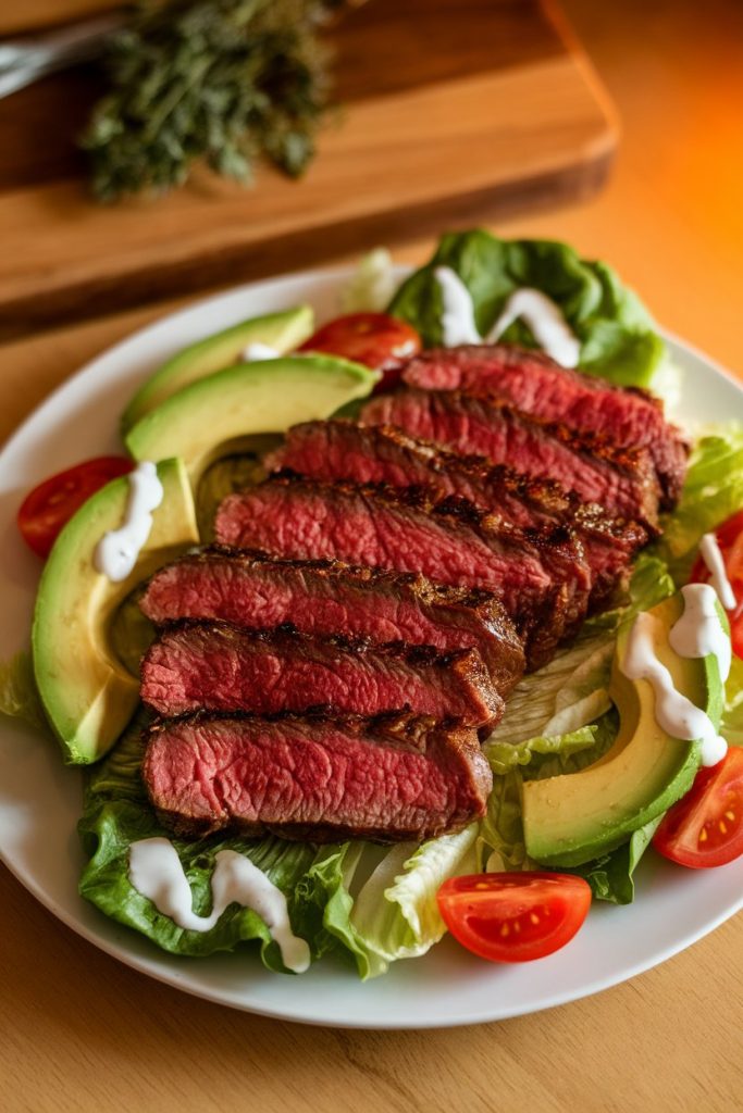 Season a lean flank steak with chili powder and sear until the center hits your preferred doneness. Let it rest, then slice thinly across the grain for tenderness. Layer onto crisp romaine with avocado, tomatoes, and a modest amount of ranch dressing. The combo delivers iron, healthy fats, and satisfying flavor in every forkful.