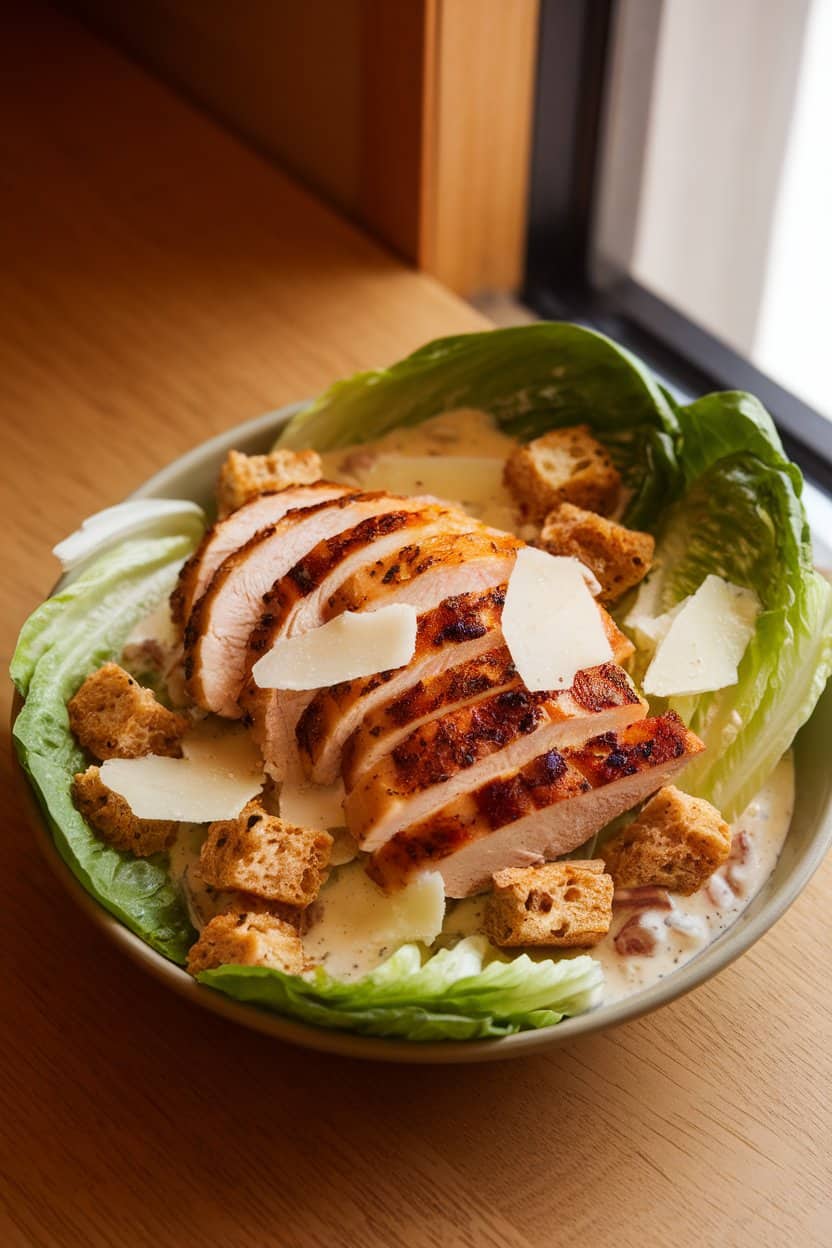Marinate boneless chicken breasts in lemon juice, garlic, and a drizzle of olive oil, then grill until the centers reach 165 °F. Toss chopped romaine with a yogurt-based Caesar dressing to cut back on calories while keeping the classic flavor. Add chicken slices, Parmesan shavings, and whole-grain croutons for crunch and extra fiber. It’s the familiar Caesar—upgraded to entrée status.