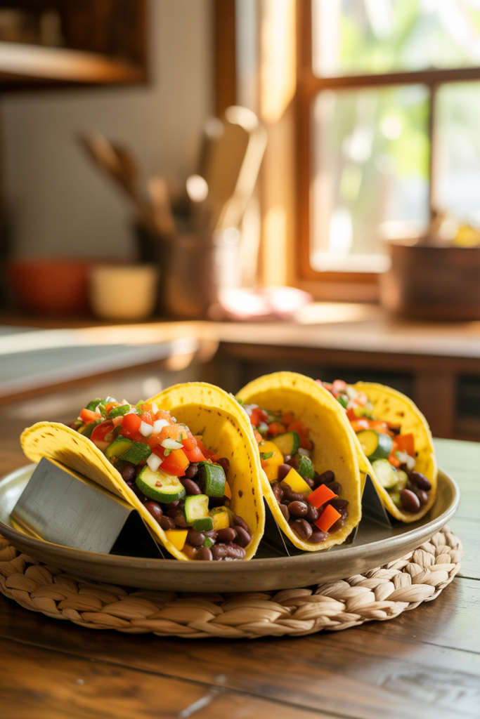 Freshly made corn tortillas are the backbone of many Nicoyan meals. Fill them with seasoned black beans, bell peppers, and quick-sautéed zucchini for a plant-powered taco night. A spoonful of pico de gallo adds crunch and acidity without extra calories. Serve family-style so everyone can build their own.
