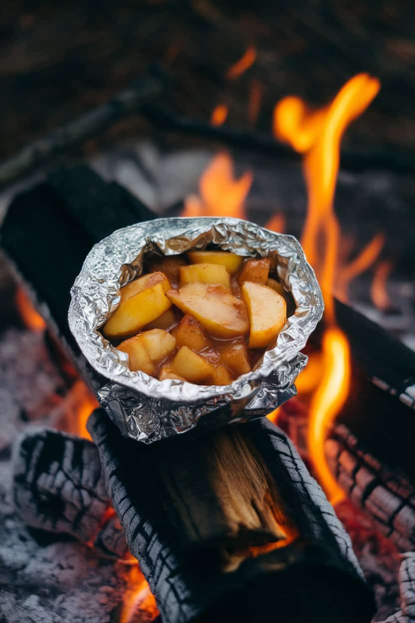 Apples baked in the embers turn soft and caramel-sweet. Core each apple, stuff with butter, brown sugar, and cinnamon, wrap in foil, and nestle into hot coals. After about 15 minutes, you’ll have steaming fruit that tastes like pie filling minus the crust. Serve with a spoon or over morning oatmeal for a dessert-breakfast crossover.