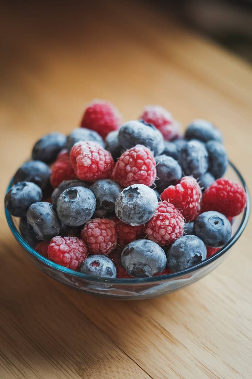 Frozen berries satisfy sweet cravings and offer a hint of protein. Place the berries on a lined tray, and freeze until solid. Pack them in a small insulated container so they stay cold for a few hours on the trail. They double as mini ice cubes keeping other snacks chilled.