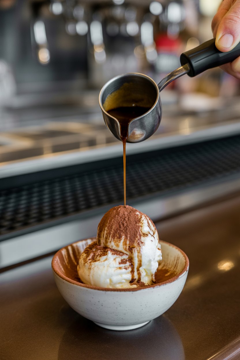 Scoop vanilla gelato into a tumbler. Pull a hot espresso shot, add a pinch of ground cardamom, and pour over the ice cream. Finish with sifted cocoa powder. The cold-hot contrast feels downright celebratory.