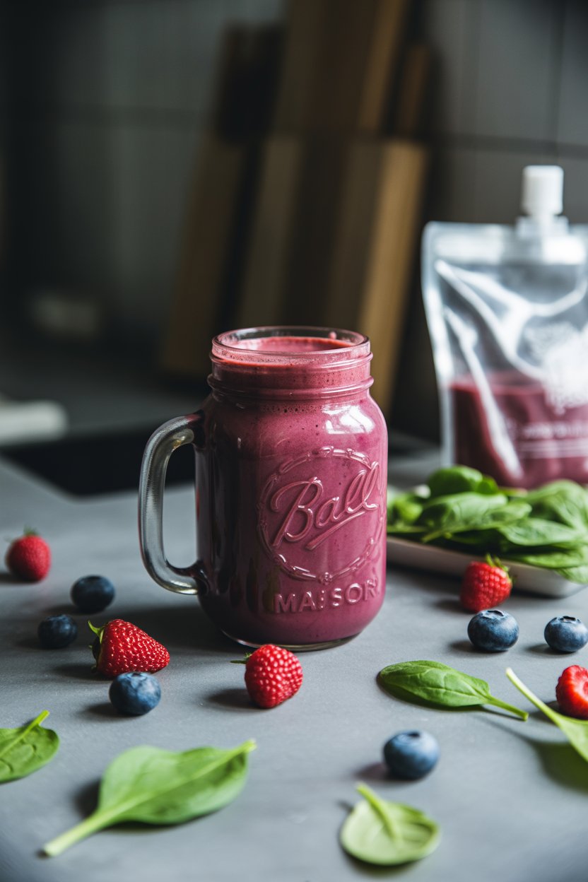 Blend unsweetened almond milk, frozen berries, spinach, and a scoop of clean protein powder. Each 12-ounce serving brings 20 g of protein and doubles as a hydration boost. Pour into an insulated pouch or bottle to keep it chilled.
