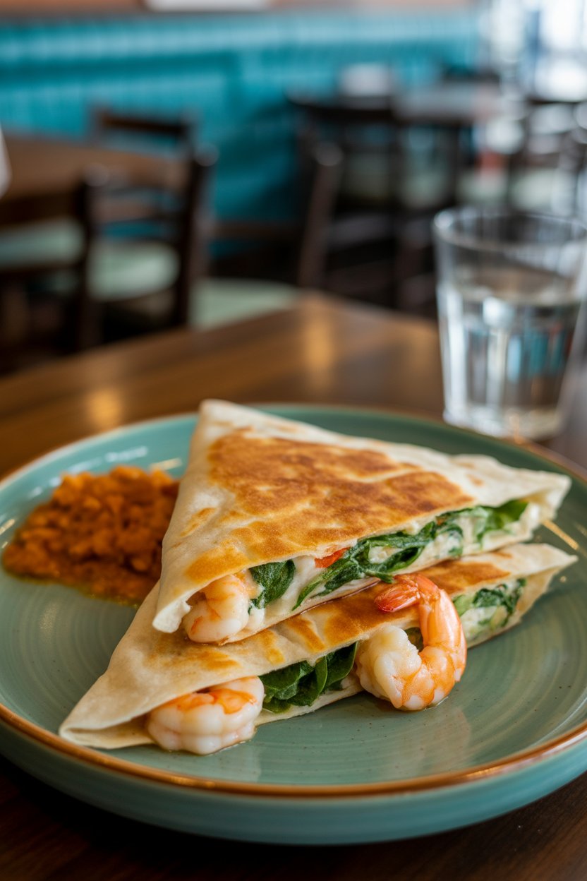 Sauté shrimp and zucchini coins in lemon juice and minced garlic, then tuck inside a tortilla with a light dusting of mozzarella. Bright flavors keep it from feeling heavy. Ideal for a quick summer dinner.