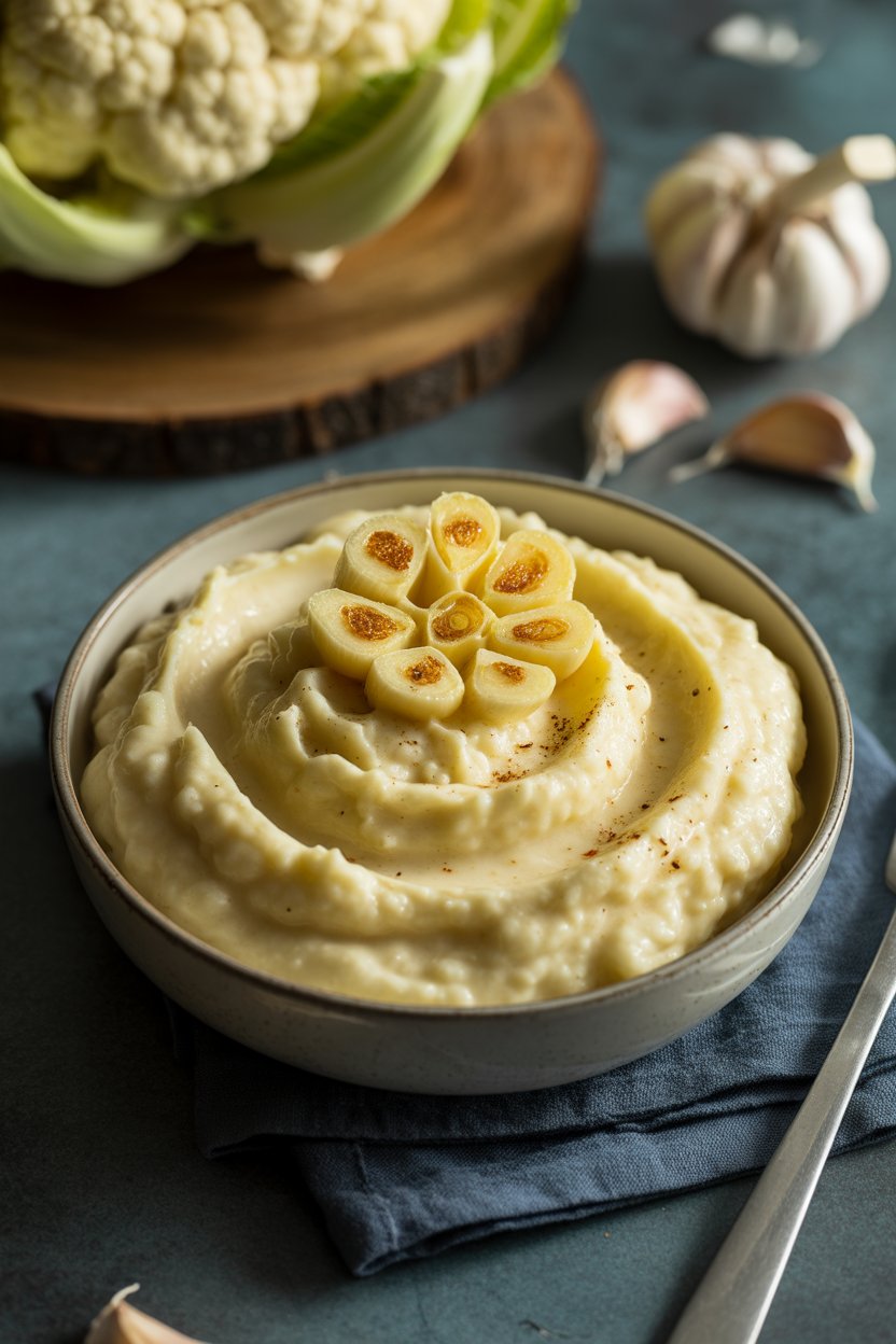 Steamed cauliflower purées into a silky mash that stands in for potatoes. Roasted garlic keeps flavors mellow yet rich. Stir in a splash of almond milk for extra creaminess.