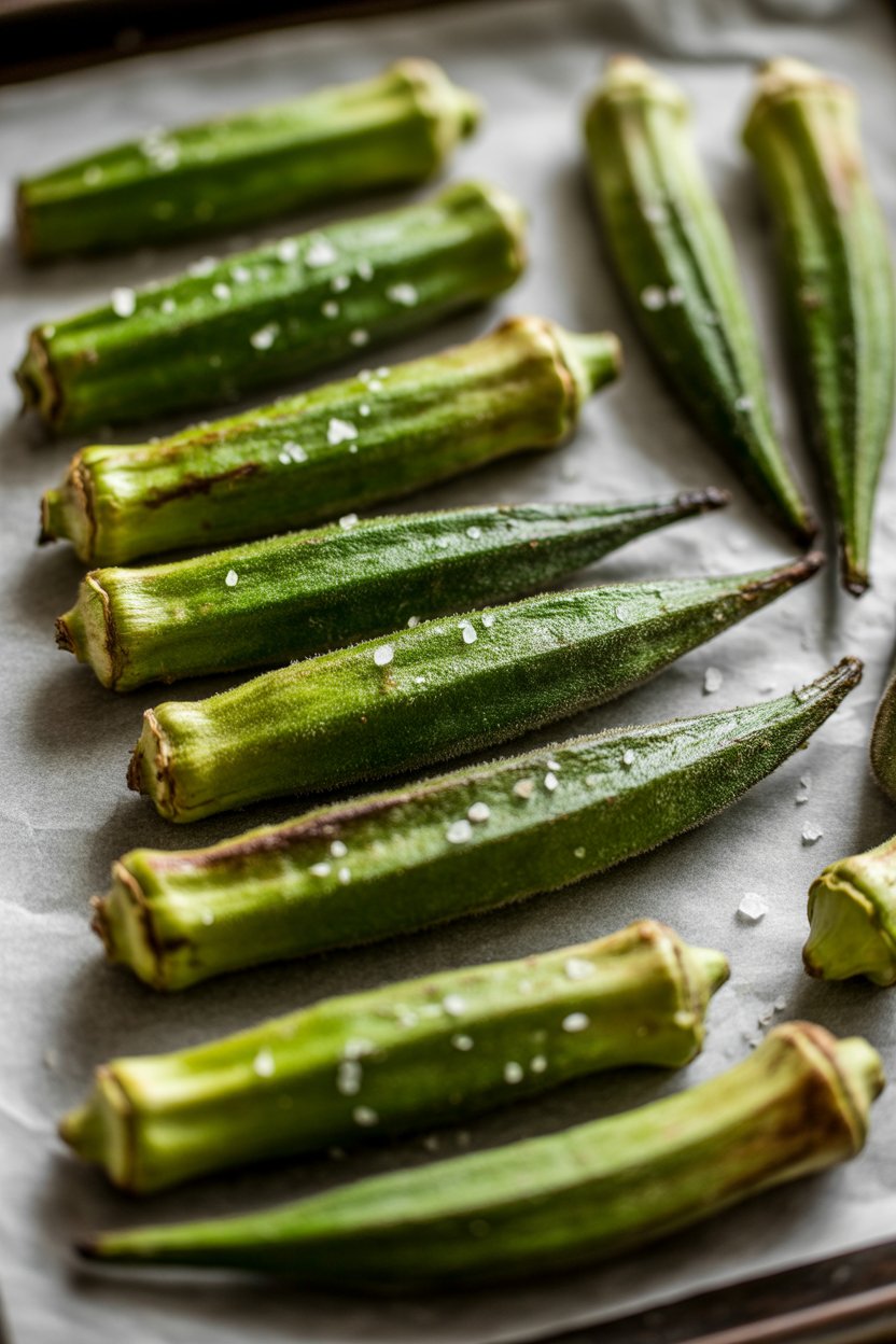 Roasting okra at high heat reduces slime and turns the pods crisp. A touch of olive oil and coarse salt is all that’s needed. Enjoy immediately while edges stay crunchy.