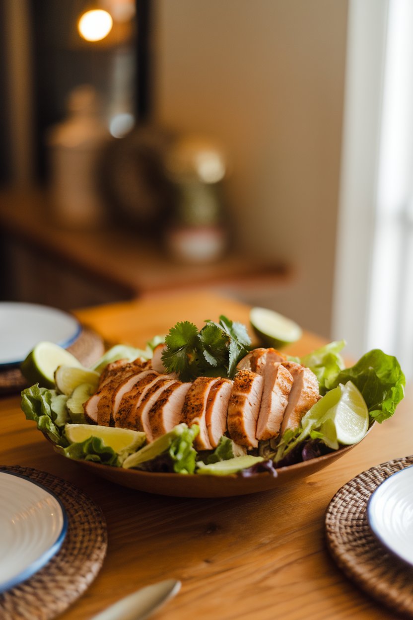 Boneless chicken thighs are marinated in lime juice, garlic, and a dash of cumin, then grilled until lightly charred. Swap tortillas for sturdy romaine leaves to cut carbs and add crunch. A quick avocado mash rounds out the healthy fat profile while keeping everything creamy.