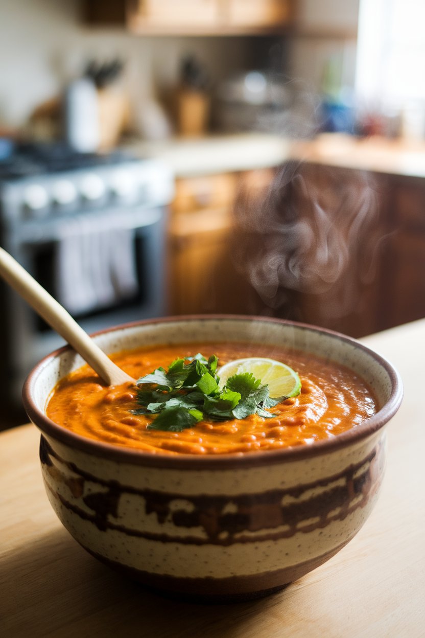 Red lentils melt into sweet potatoes to create a velvety base loaded with plant protein and fiber. A hint of ginger, cumin, and smoked paprika adds depth without overpowering the natural sweetness. Serve with a squeeze of lime for brightness and whole-grain toast for crunch.