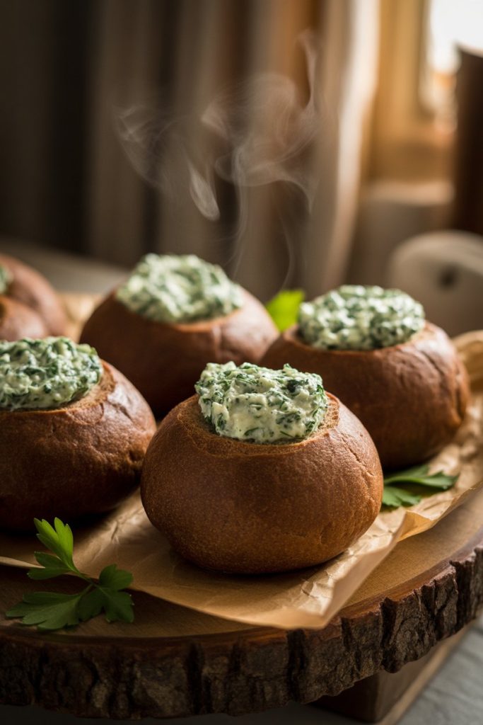 - 11. Mini “Cauldron” Spinach Dip Bread Bowls