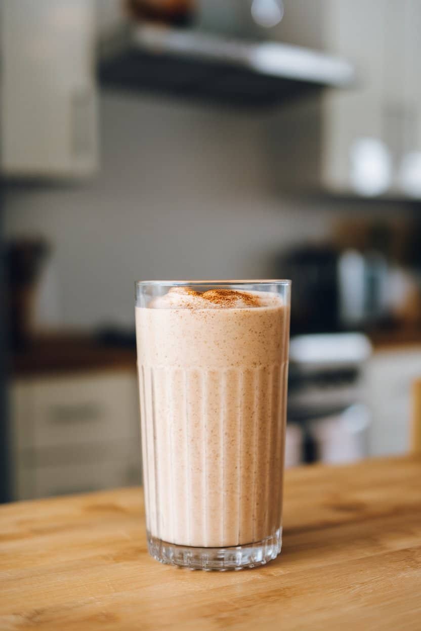 Blend 1 small cored apple, ¼ cup rolled oats, 1 cup milk, cinnamon, and vanilla whey. Oats thicken the drink and supply slow-release carbs. Leaving the apple skin on bumps up antioxidants and fiber. It’s pie flavor without a crust.