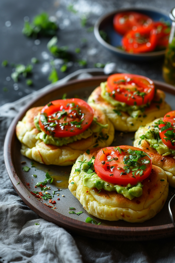This light and airy bread is a low-carb alternative to traditional bread. Whip egg whites with an electric mixer until stiff peaks form, then gently fold in egg yolks and a bit of cream of tartar. Spoon the mixture onto a baking sheet lined with parchment paper and bake in a preheated oven until golden brown. Top with mashed avocado and sliced tomatoes for a healthy and satisfying open-faced sandwich.