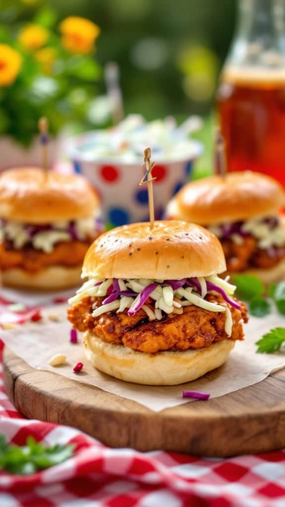 BBQ chicken sliders are a hit for any Fourth of July gathering. These tasty little sandwiches are packed with juicy chicken and topped with crunchy slaw for the perfect bite. Serve them up on mini buns, and watch them disappear in no time!