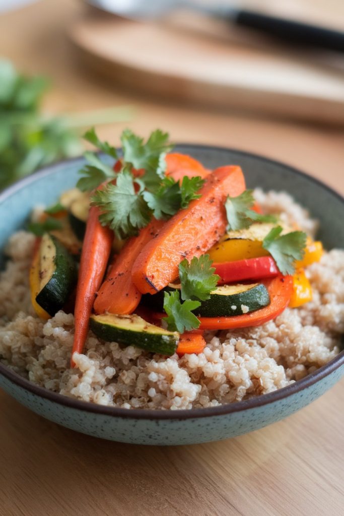 34. Quinoa and Roasted Veggie Bowl (Carrots, Zucchini, and Bell Peppers)