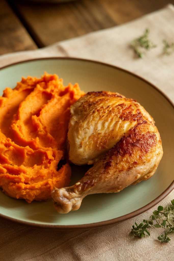 33. Baked Chicken with Carrot and Sweet Potato Mash