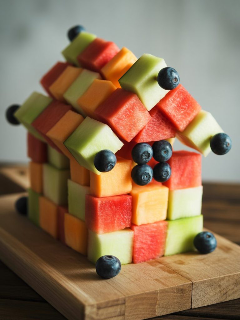 Cut honeydew into slabs, then use a hexagon cookie cutter for geometric appeal. Arrange pieces edge-to-edge like a witch’s spell tile. Mint leaves tucked between add a pop of green fragrance.