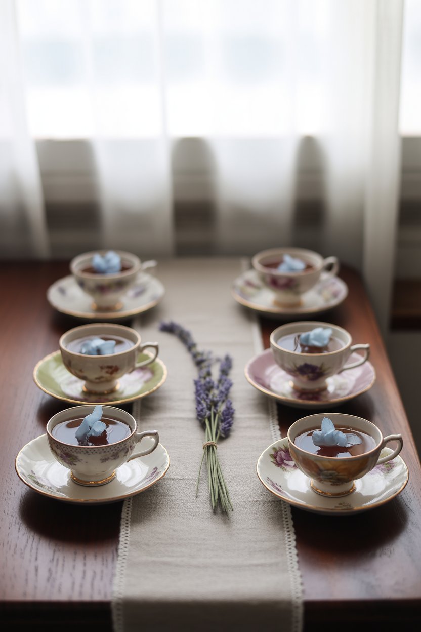 Blackberry gelatin and gin pair nicely with herbal sage. Gently press a small leaf against the side of each cup before the gelatin sets for a suspended garnish. The earthy aroma balances the sweet fruit.