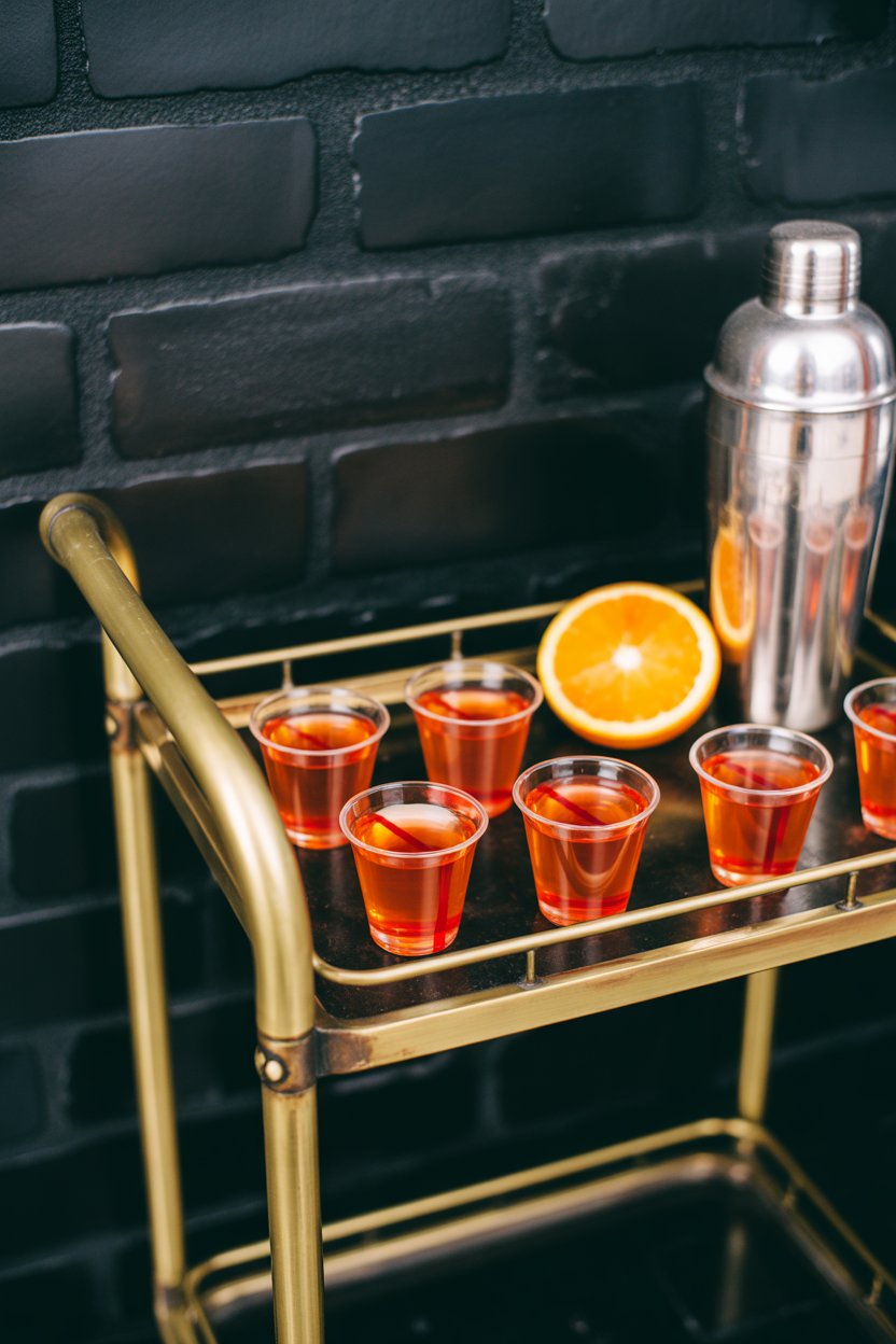Orange gelatin gets depth from equal parts gin, Campari, and sweet vermouth. Use a dropper to inject raspberry syrup right down the center for a blood-red vein. The bittersweet balance mirrors an actual Negroni.