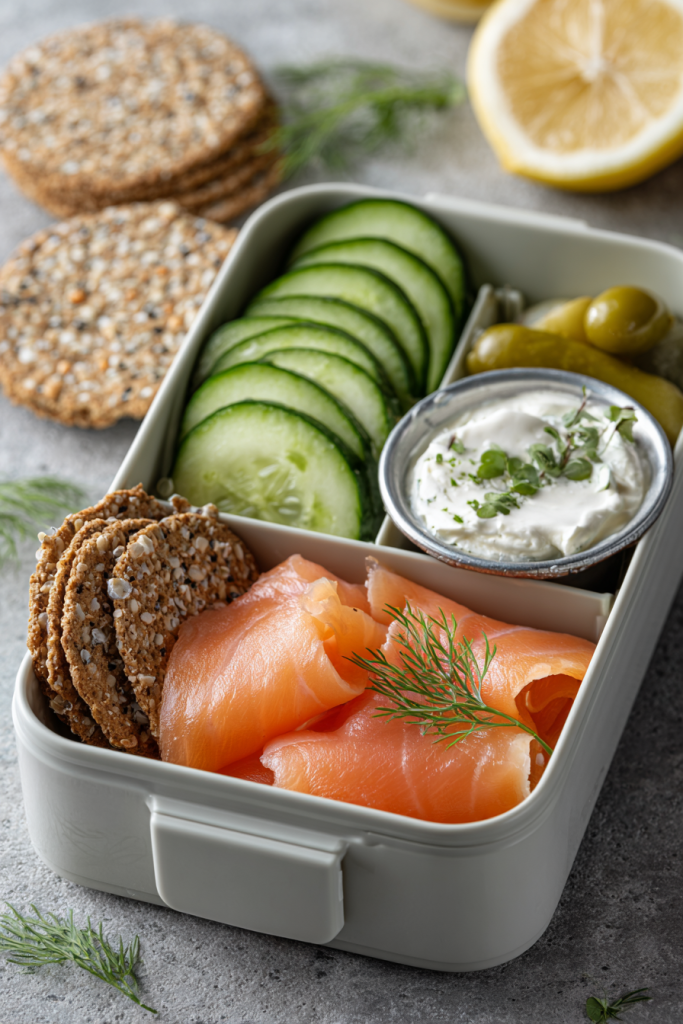 Smoked trout provides a milder fish option rich in omega-3s. Greek-yogurt potato salad with fresh dill feels creamy without heavy mayo. Cool cucumber slices cleanse the palate between bites.