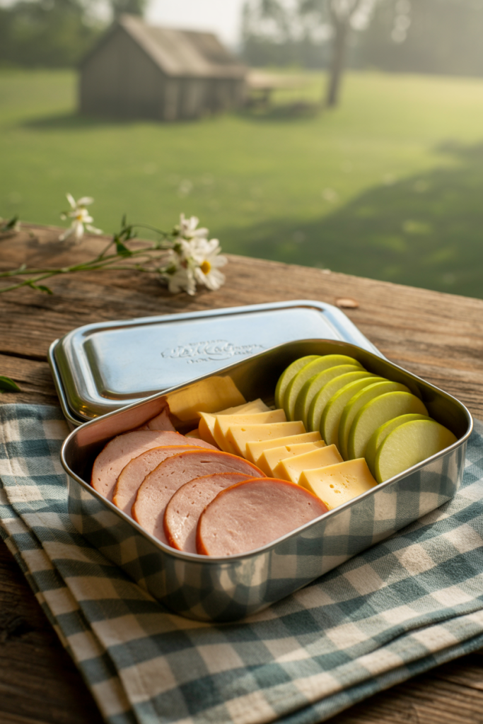 Low-sodium ham keeps the classic meat-and-cheese duo feeling grown-up. Sharp cheddar adds depth and calcium. Lemon-kissed apple slices stay bright and prevent browning until lunchtime.