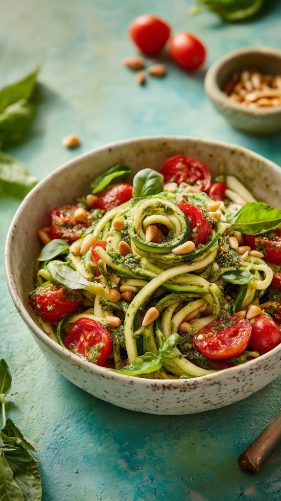 50. Pesto Zucchini Noodles with Cherry Tomatoes