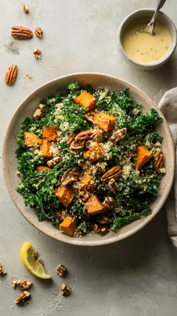 33. Sweet Potato and Kale Salad with Lemon Tahini Dressing