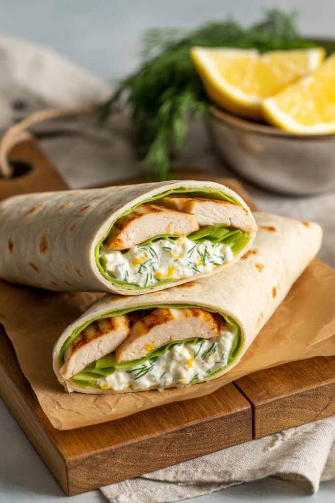 50. Lemon-Dill Cottage Cheese Chicken Wraps