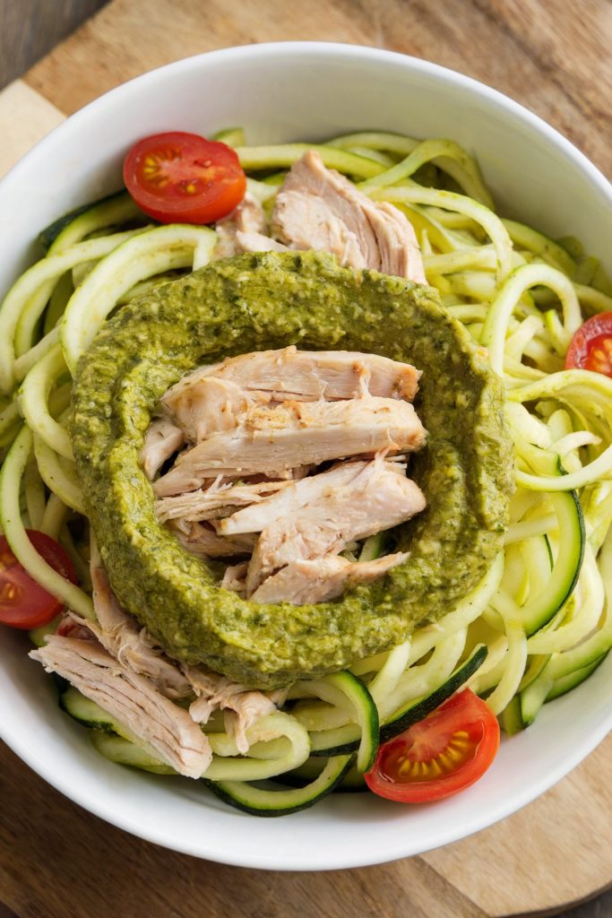 34. Zucchini Noodles with Pesto and Chicken