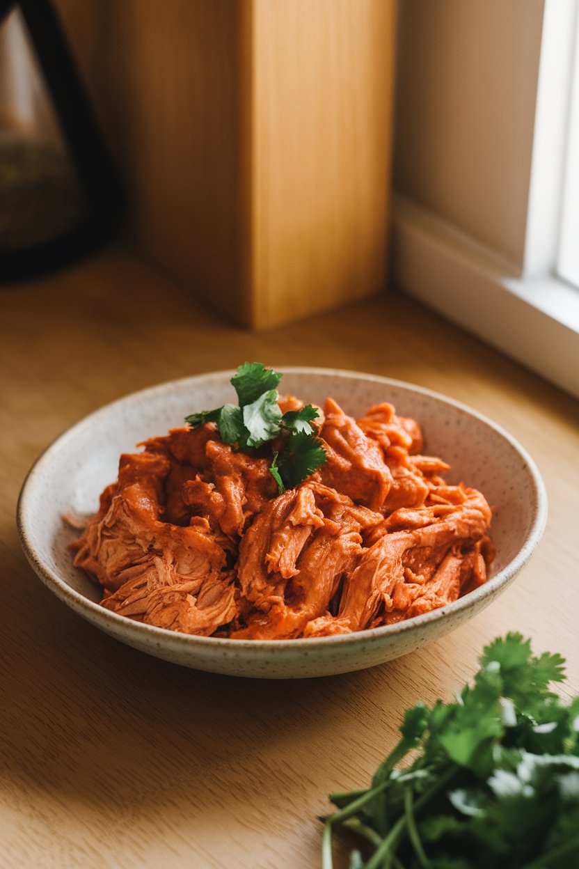 Boneless, skinless chicken breasts simmer with chipotle peppers in adobo, fresh lime juice, and a splash of chicken broth. After six hours on low, the meat pulls apart with a fork and soaks up the vibrant sauce. Pile it onto lettuce wraps or tuck it into tacos for a high-protein main. Leftovers freeze beautifully for quick meal prep.