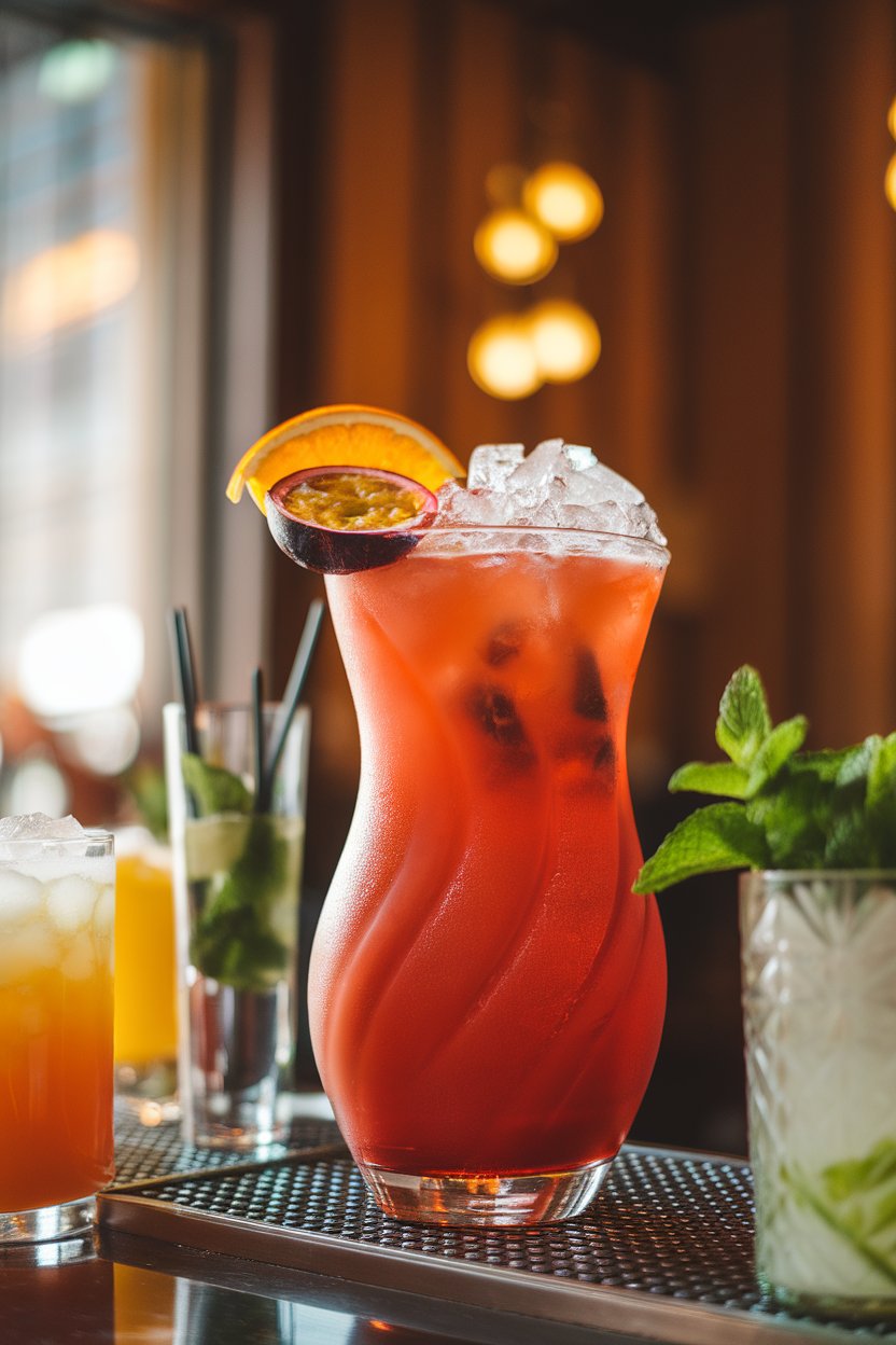 Invented at Pat O’Brien’s in the 1940s to move excess rum, the Hurricane mixes light and dark rum with passion-fruit syrup and fresh citrus for a storm of tropical flavor. Its crimson hue and signature glass are now shorthand for Mardi Gras revelry. Serve over crushed ice and finish with an umbrella if you’re feeling playful.