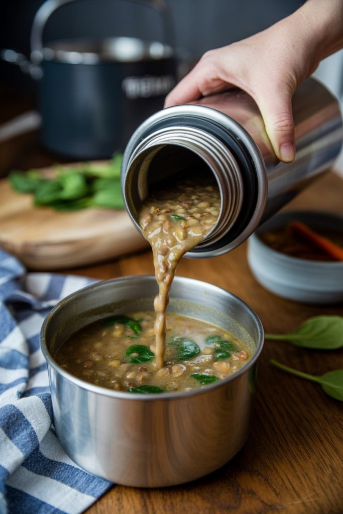 Ahead-of-time lentil soup reheats quickly and travels well in a thermos. Protein-rich lentils and tender spinach create a filling yet light meal. Sip it during your commute or once you reach the office.