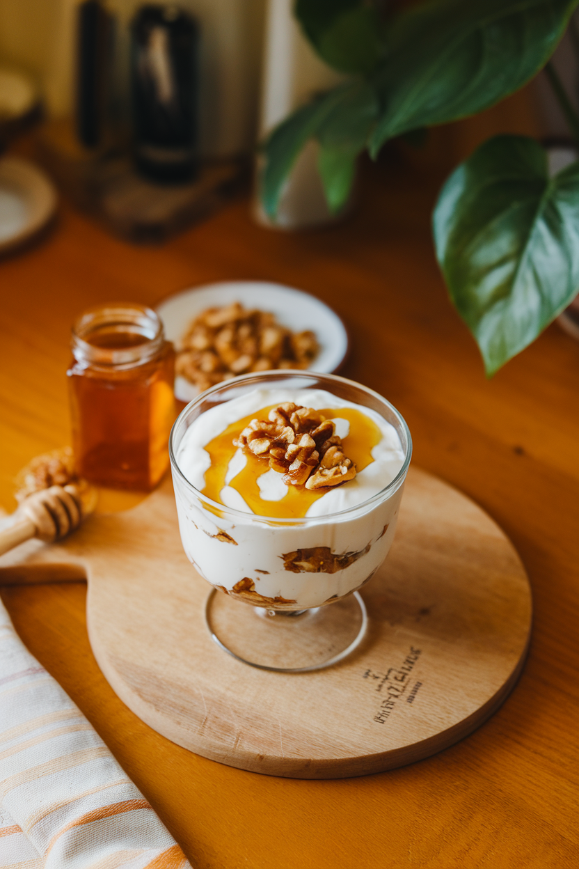 Thick, tangy Greek yogurt pairs beautifully with floral honey and crunchy walnuts for a five-minute breakfast or snack. Use plain, unsweetened yogurt to keep added sugars low and let the honey provide gentle sweetness. Walnuts add heart-healthy fats plus a satisfying crunch. For extra flair, stir in a pinch of cinnamon or a few fresh berries.