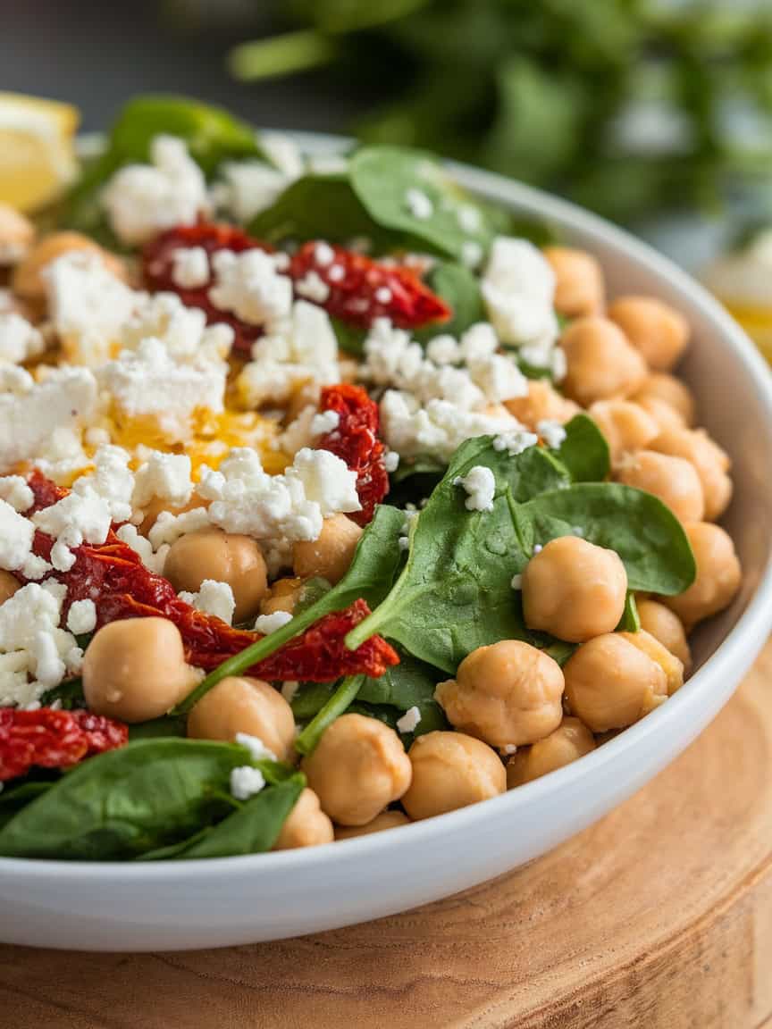 This recipe is ideal for busy weeknights or as a packed lunch because it’s quick, filling, and bursting with nutrients. Chickpeas offer a satisfying plant-based protein and fiber boost, while sun-dried tomatoes and lemon juice bring zingy brightness. Feel free to swap spinach for kale, add roasted red peppers, or omit the feta for a vegan version. It’s a flexible, crowd-pleasing dish that honors the fresh flavors of the Mediterranean and makes healthy eating wonderfully delicious.
