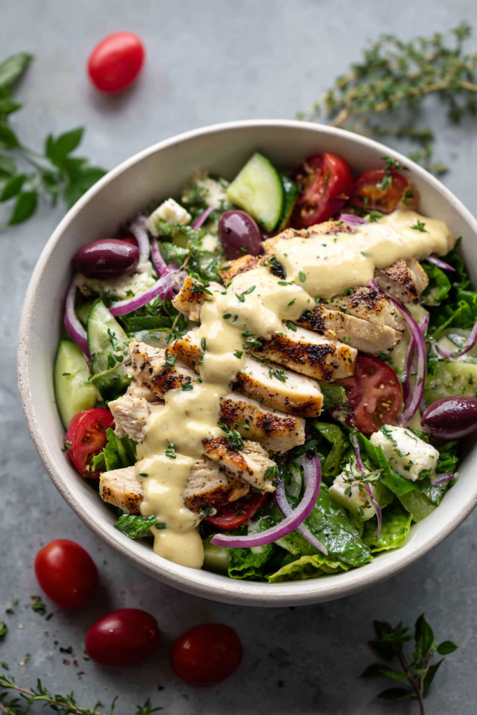 Let’s start with a plant-based protein powerhouse: the Mediterranean Power Bowl. This salad is delicious and incredibly satisfying, thanks to a combination of quinoa, chickpeas, and fresh veggies.