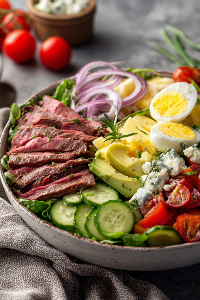 Lean flank steak, grilled or pan-seared, pairs beautifully with buttery avocado for balanced healthy fats. A punchy chimichurri pulls everything together with parsley, garlic, and vinegar. Serve the steak chilled or room temperature to keep greens crisp.