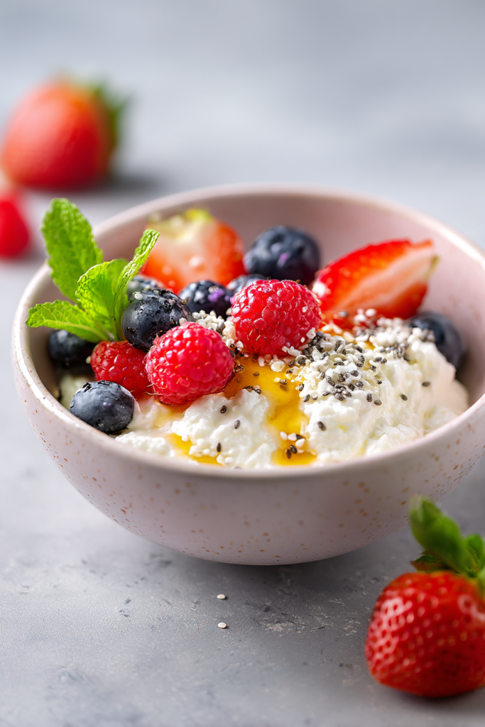 Low-fat cottage cheese clocks in at around 14 grams of protein per half cup. Pairing it with juicy tomatoes and fresh herbs turns a simple snack into a refreshing salad. Add whole-grain toast on the side for extra crunch.