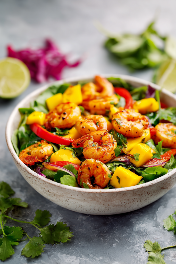 - 42. Blackened Shrimp & Mango Spinach Salad