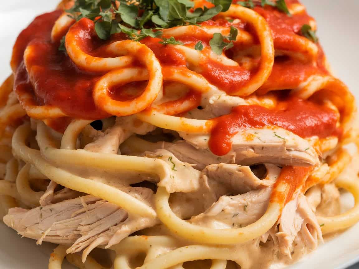 Imagine tender, fall-apart chicken pieces infused with the best of both worlds—rich, creamy Alfredo sauce plus tangy marinara—slow-cooked until perfection. This Saucy Double-Decker Chicken Pasta is the ultimate comfort dish, giving you the satisfaction of two sauces in one cozy bowl. With minimal prep time and the magic of a slow cooker, it’s a must-try for busy weeknights or lazy weekends.