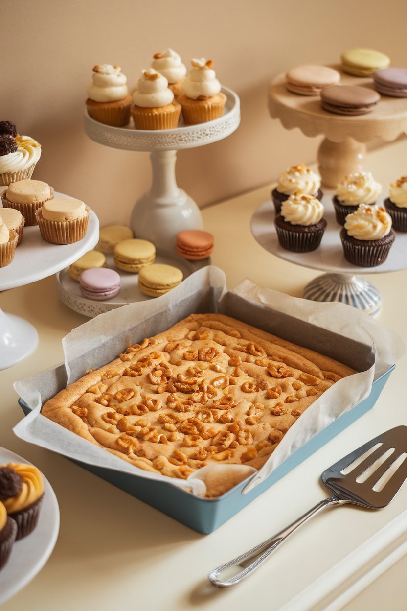 Spread brownie batter in the pan, then dot cookie dough over the top. Both layers bake simultaneously, creating a chewy-fudgy hybrid. Let them cool completely to keep the layers distinct when slicing.